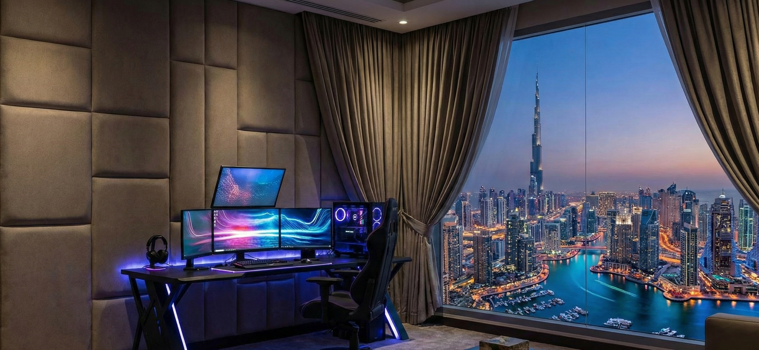 Dubai gaming rooms have great challenges with windows. Local architecture features large windows that allow natural light but do not offer much sound isolation. The most viable solution is heavy acoustic curtains, which are offered to renters and cost-effective gamers. These curtains prevent the outside noise and do not allow the gaming audio to escape.